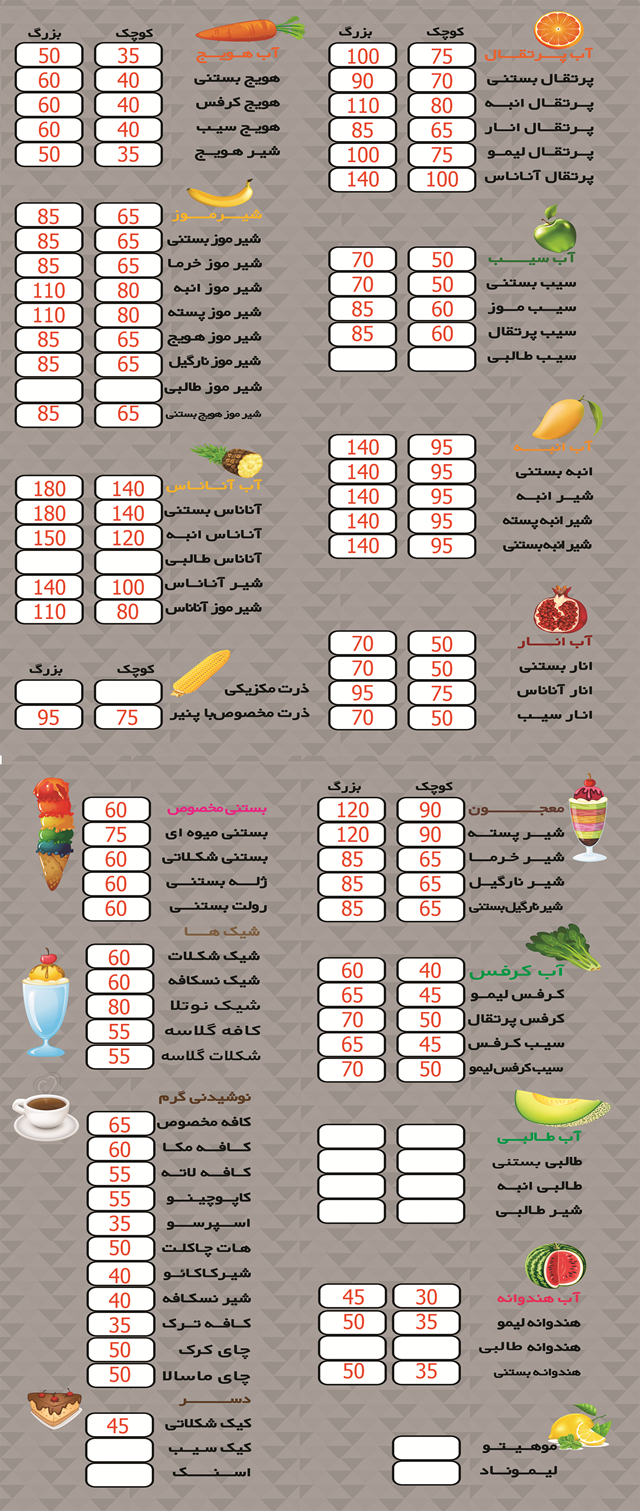 بستنی و انواع نوشیدنی های سرد و گرم 100% طبیعی